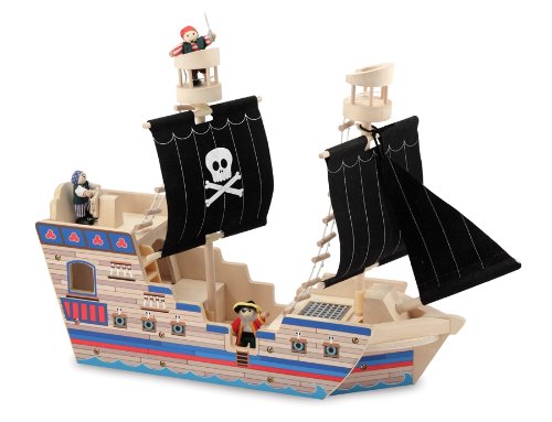 Wow! I ordered our pirate ship on Monday, and it arrived today (Thursday morning). We love Melissa and Doug's wooden toys, and this pirate ship is no exception. My 5-year old loves all things pirate, but we aren't big fans of super-scary or evil pirates, which excludes most of the pirate ships out there. This ship, however, just fit the bill! The wooden ship is SOOO cute, and the 3-pirate crew is even cuter. It seems to be sturdily made, and I had it assembled (no tools required) in under 5 minutes.All 3 of my children spent the whole afternon playing with it. Melissa and Doug toys are definitely good for the imagination, and I had a lot of pleasure from it, too, as I listened to the shouts of "swab the deck" and "walk the plank" and "batten down the hatches" coming from the upstairs!Thanks, Melissa and Doug, for another great toy, and thanks, Amazon for such great service!!!!!