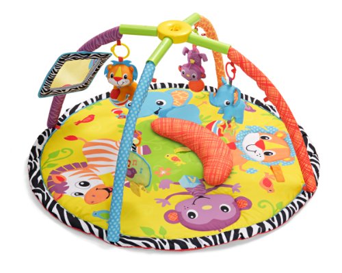 Infantino Twist and Fold Activity Gym Baby Animals encourage kids to reach out and grasp while also engaging their senses. It comes with linkable toys with bright colors and soft textures that can also be used as teethers, stroller toys and car seat toys. The soft bolster pillow provides comfort, too. It's a portable toy that's made with a peek-a-boo mirror for self discovery. It pops up in one simple motion and folds down for easy storage.