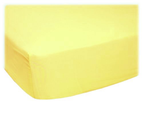 This luxurious plush 100% cotton "jersey knit" sheet is made of the highest quality fabric that's measured at 150 gsm (grams per square meter). That means these are softer than your favorite t-shirt, and as soft as flannel. Sheets are made with deep pockets and are elasticized around the entire edge which prevents it from slipping off the mattress, thereby keeping your baby safe. These sheets are so durable that they will last all through your baby's growing years. We're called sheetworld because we produce the highest grade sheets on the market today. Color is a solid lemon yellow.