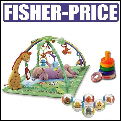 - Fisher-Price Rainforest Melodies and Lights Deluxe Gym + Accessory Kit